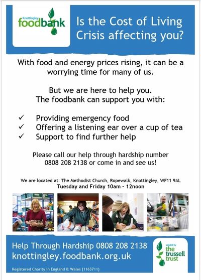 Knottingley foodbank is a project founded by local churches and community groups, working together towards stopping hunger in our local area.